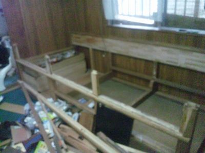 コレが普通のベッドなら、まだ簡単ですが、たんす並みに丈夫に作成し、家の柱に直接、ネジをつけて