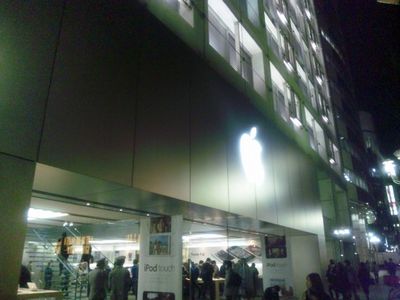着いたアップルショップは、テレビカメラが数台・・・・あれ、リポータ、日本語ではない!?