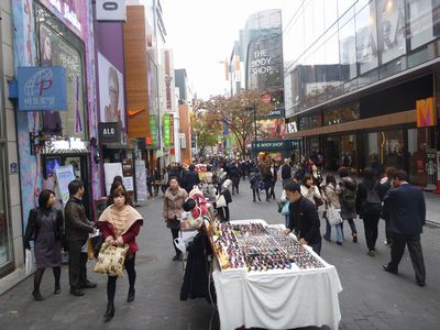 再度、ミョンドンを通り抜けます。 昼前でしたので、人は少ないです。