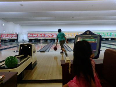 水曜日、かえってから、ナオキと一緒に、スポーツの秋に挑戦。ということでボーリング場におでかけ