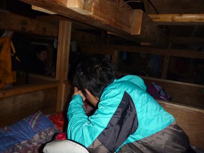 せんべい布団・・一泊@5000円ですけど・・・山荘はこんな感じなんでしょうか。