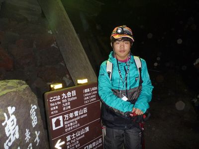 上の写真で明かりが点いている所が8合目・・・そのまま行くと、0時ごろに到着