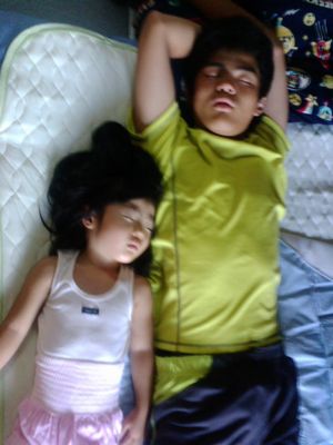 くそあつい夏の朝に、ふたり並んで寝ているのは、仲がよいのか・・