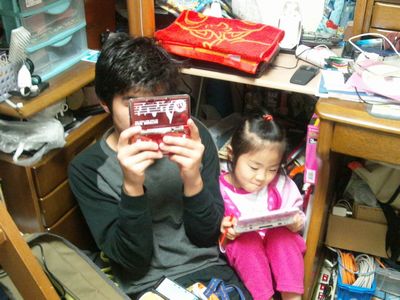 ナオキとユライは肩寄せ合って、ゲームに没頭・・。