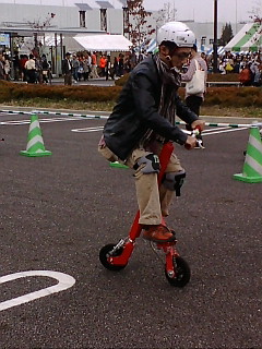 と、いうのは、ほしがっていた5万円ほどの折りたたみ自転車が、試乗でき、非常に乗りにくいことが