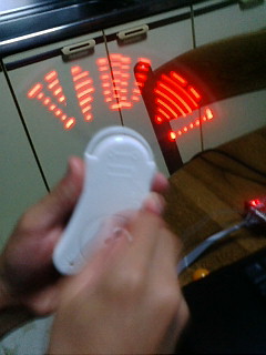 マイコンボードと、光残像キットを組み立てて、文字を浮かびあがらせる工作キット