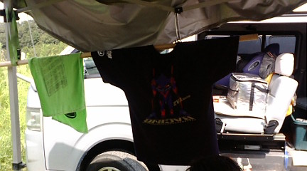 富士登山で使用した、金剛杖。 こんな使い方もできます。 いや~ほんと、暑かった!