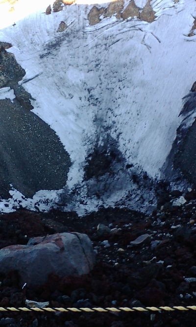 雪が残っているが、太陽が照らすと急激に暑い状況で、8月には完全になくなってしまうだろう。