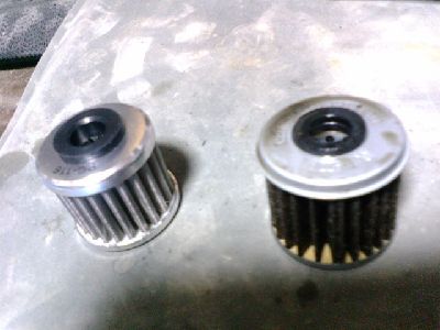 廃油箱の中に、以前の紙フィルターがあったので比較・・・。微妙に違いがある。