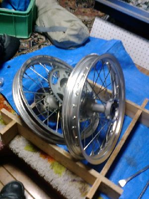 箱いりでバイク屋さんから受け取ったアッシーのリヤホイール。キンピカ!!