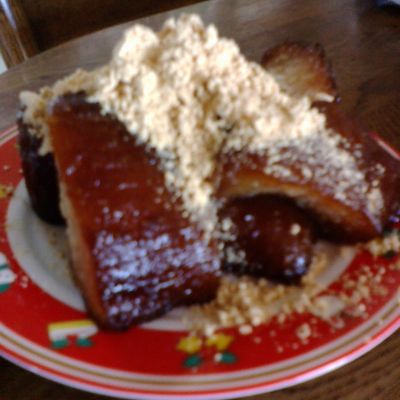 で、これでは、味がしないので、きな粉と砂糖をまぶして、食します。