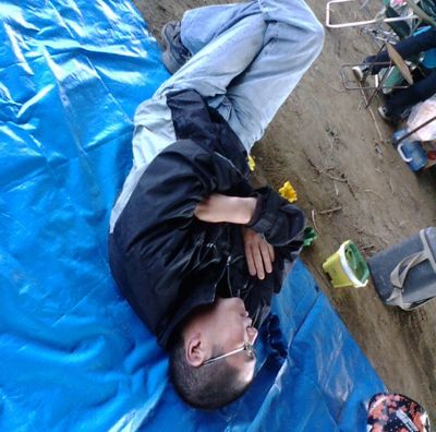 徹夜明けと、勢い酒のせいで、早くもダウン。