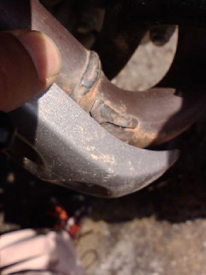 先日、溶接してもらった、リムですが・・溶接の箇所がまたクラックが入っております。