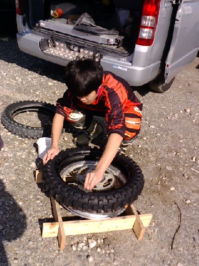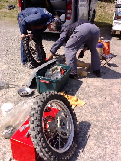 以前、ナオキが50CCの時、前輪がパンクして、一緒に参加していた