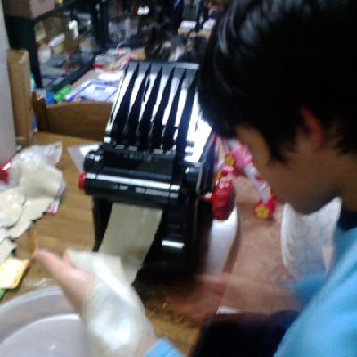 打ち粉を当てて、ローラーをカッターに切り替えます。