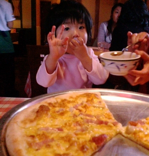 ピザに夢中のユライであります。