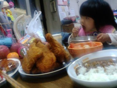 そしてクリスマス。テーブルの上には、チキンとチキン