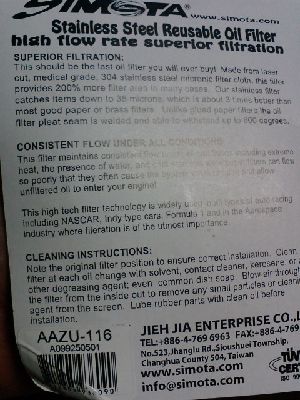言うことで、購入したのが、ステンレスオイルフィルター