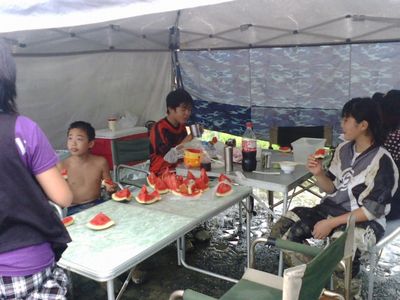 今日は、おいらが差し入れた「すいか」でお祭りだ~~~い。