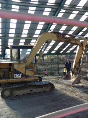 ユンボの乗り方を教えるなんて。。。でも、なかなかうまい操作。
