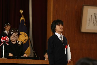 いろいろ演出は凝っていて、卒業生の言葉は、みんなが一言づつ、繋げて話、肝心部分は