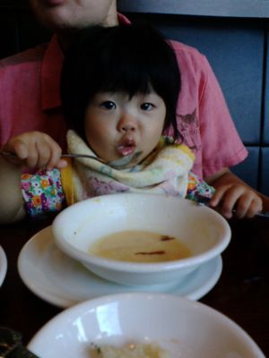 ユライはおこちゃまコーンスープで、お腹いっぱい。