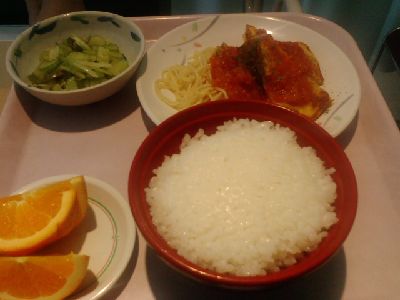 スパゲッティに、ご飯・・・・・・で、サラダは、キュウリの和え物 というセンス